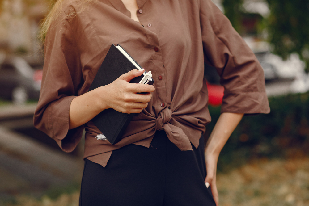 Accentele pot fi create și prin detalii subtile. Nasturii metalici ai unui sacou, o cusătură interesantă sau o curea cu design minimalist pot adăuga caracter ținutei fără să o domine vizual.